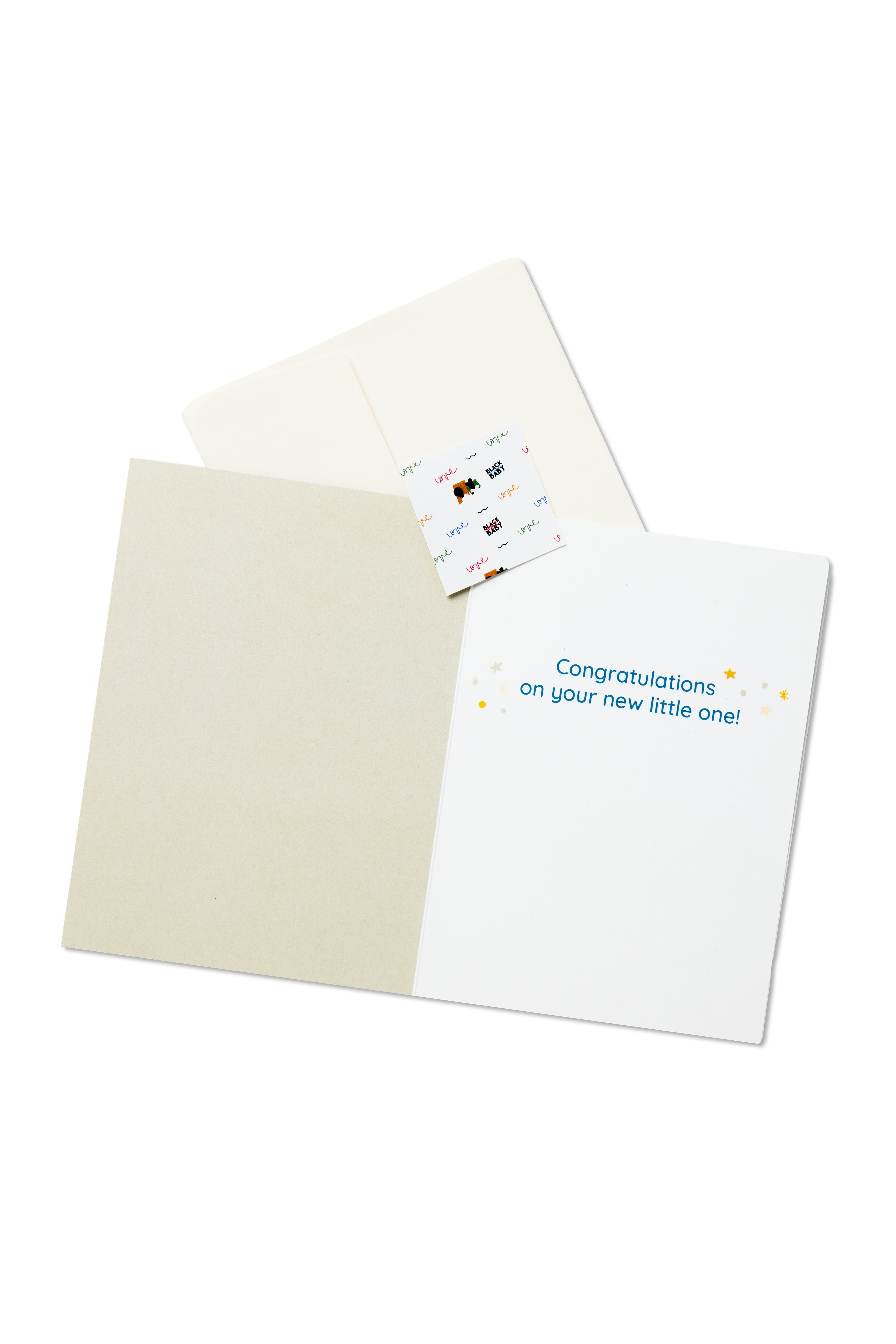 Details: Inside - "Congratulations on your new little one." Includes envelope.